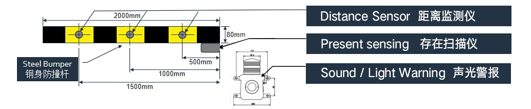 ![]() | 燈光/語(yǔ)音警報(bào)系統(tǒng) · 燈光提醒駕駛員已經(jīng)進(jìn)入預(yù)警區(qū)域 · 語(yǔ)音提醒操作人員已經(jīng)進(jìn)入人員監(jiān)測(cè)區(qū)域 |