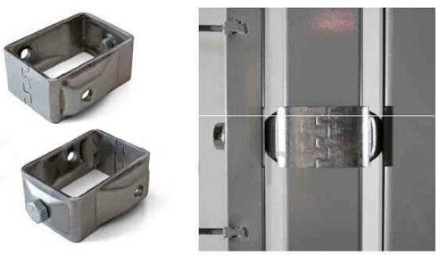 | Troax 按扣是立柱的替代解決方案,在安裝中充當(dāng)兩個(gè)相連面板的加固接頭。安裝按扣時(shí)無需螺絲或使用工具 | |