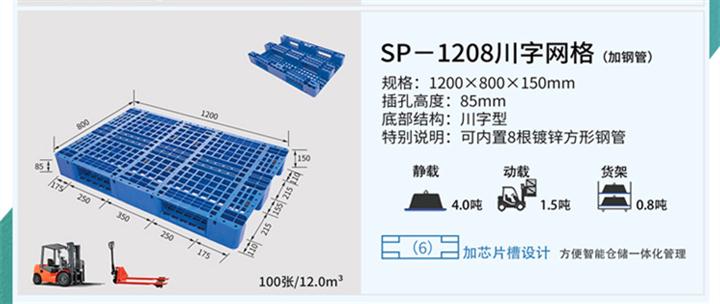 1、根據(jù)工商業(yè)物流需要:川字托盤適合平地搬運(yùn)和上架使用。另外,我公司采用抗凍技術(shù)改善托盤性能,是低溫庫、冷凍庫的選擇