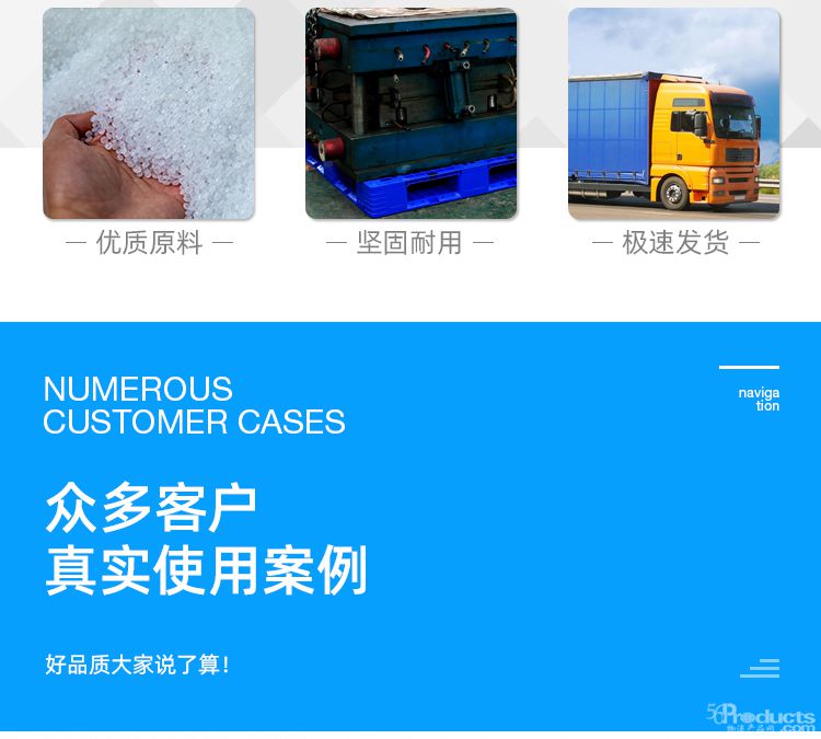 6、破損塑料托盤可回收,經(jīng)加工可作為其他物品的原材料,使用壽命長(zhǎng)。