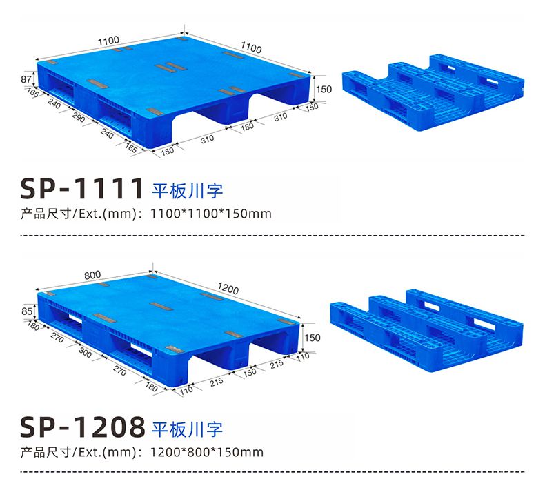 • 1111 川字平板塑料托盤叉車貨運棧板
