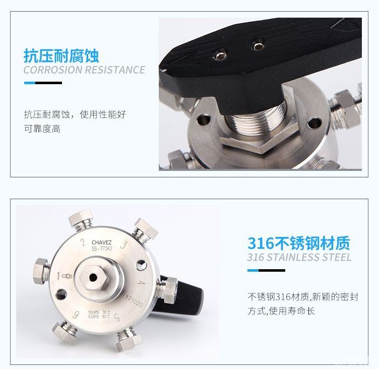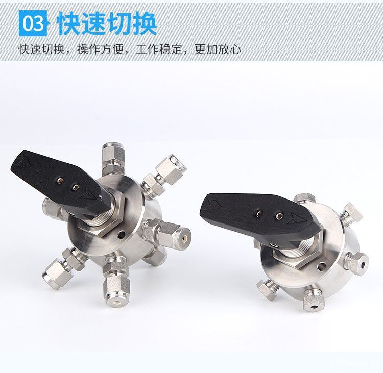 6.極其方便的流路設(shè)計方案,可以選擇從一個入口有選擇的轉(zhuǎn)到六個出口,或者從六個入口到一個共同出口。