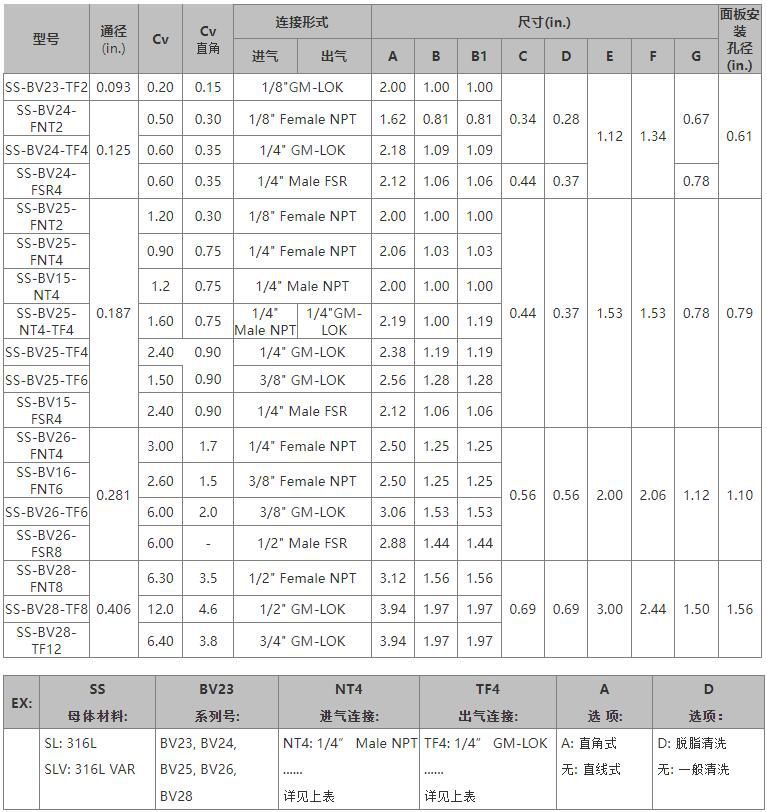 1.最高使用壓力 BV15:3000 psi (207 bar),其余為2500 psi (172 bar)。