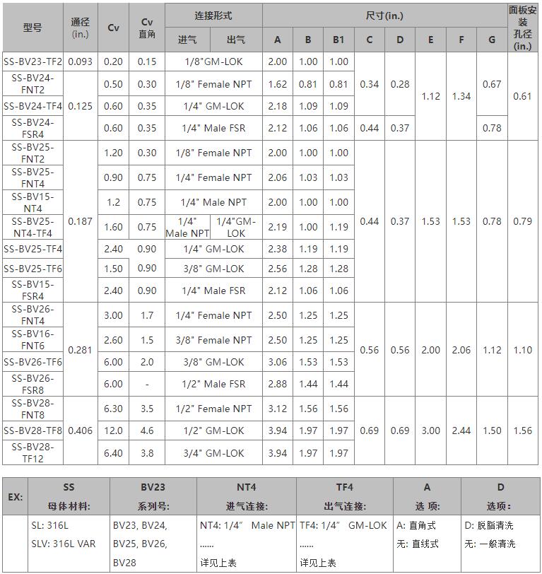 1.最高使用壓力 BV15:3000 psi (207 bar),其余為2500 psi (172 bar)。