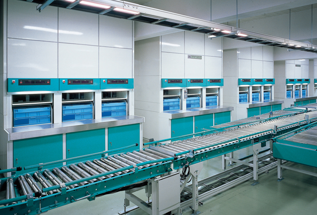 這是一種將若干個垂直型旋轉(zhuǎn)支架合并為一體的獨(dú)特旋轉(zhuǎn)式倉庫。各個支架獨(dú)立進(jìn)行檢索和搬運(yùn),大幅度地減少了貨物出入庫的等待時間。 上部空間的有效利用節(jié)省了空間。另外,如果要進(jìn)行布局的變化和設(shè)備的擴(kuò)充等行為時,也可以充分利用支架單位的靈活性進(jìn)行調(diào)度。