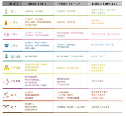 各類用戶群體教育機器人需求與實現(xiàn)時長