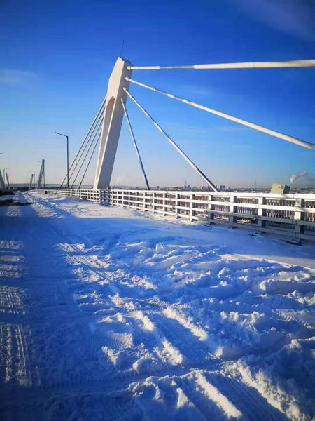 2019年11月,剛剛下過一場大雪的黑河與對岸俄羅斯布拉戈維申斯克市共同披上了白色的外衣。湛藍的天空下,一條飛架中俄兩國的紅色鋼鐵“巨龍”橫跨黑龍江。站在已經完工的黑河—布拉戈維申斯克黑龍江(阿穆爾河)大橋上,很容易讓人勾勒出未來在這座大橋上經貿繁榮的畫卷。