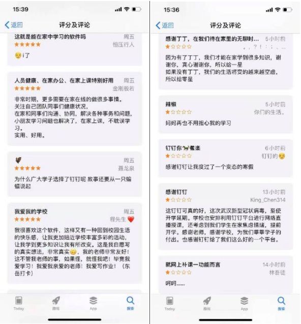 全國萬所學校推行釘釘在家上課后,釘釘應(yīng)用市場的評論區(qū)涌現(xiàn)眾多學生“一星好評”:“寒假作業(yè)加量不加價”“我絕對是自愿的,讓我有一個充實的寒假”“評論區(qū)充斥著濃濃的歡樂畫風。