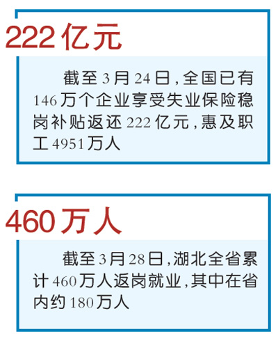 抓住關鍵點,打出政策“組合拳”,對沖疫情影響。據(jù)人力資源和社會保障部發(fā)布的信息,截至3月24日,全國已有146萬個企業(yè)享受失業(yè)保險穩(wěn)崗補貼返還222億元,惠及職工4951萬人。