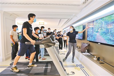 6月24日,華為上海南京東路旗艦店正式開業(yè)。該店一樓是產(chǎn)品體驗(yàn)區(qū),二樓為全場景體驗(yàn)區(qū),分為智能家居、移動辦公、運(yùn)動健康、智慧出行、影音娛樂等五大場景。該店還為消費(fèi)者提供全場景沉浸式互動體驗(yàn)。圖為市民在該店內(nèi)體驗(yàn)智能運(yùn)動產(chǎn)品。