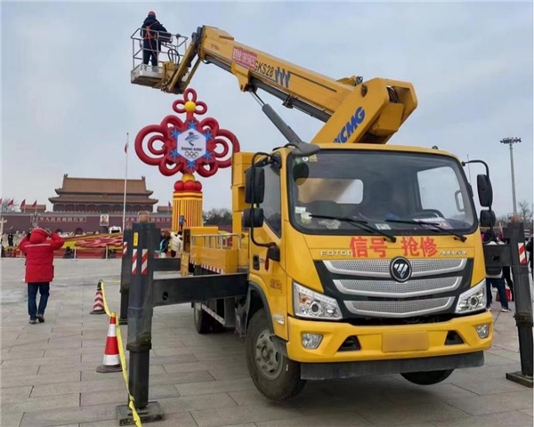 為了迎接冬奧會及中國傳統(tǒng)節(jié)日春節(jié),營造隆重熱烈的氛圍,天安門廣場上搭建了“精彩冬奧”為主題的花壇,以中國結(jié)為主景,花壇頂高17米,為五環(huán)環(huán)繞在一起并嵌有雪花圖案,寓意五洲同慶冬奧會。在“精彩冬奧中國結(jié)”花壇搭建任務(wù)中,歐馬可高空作業(yè)車專業(yè)出擊,以不負所托的載重能力、精益求精的操作系統(tǒng)和超能持久的續(xù)航能力,保障冬奧高空作業(yè)更安全、高效、圓滿地完成搭建任務(wù)。