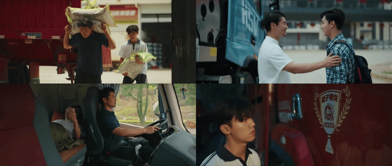 影片聚焦于一對卡車司機(jī)父子的生活片段:父親選擇帶兒子踏上一段貨運之旅,途中父親無微不至的關(guān)懷、專業(yè)盡責(zé)的職業(yè)精神,以及車友提到的“望子乘龍”公益計劃,逐漸喚醒兒子的理解與責(zé)任感。最終,他決心重返學(xué)業(yè),用實際行動回應(yīng)父愛。影片以“生活的考場,愛就是滿分答案”點題,深刻傳遞出理解、陪伴與成長的情感主題。