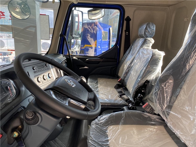 新車型采用排半駕駛室,內部空間寬大通透,為司機提供了移動的“舒適之家”。用戶還可根據需求選裝氣囊懸置座椅、全方位防噪包以及頂置駐車空調等舒適性配置,有效緩解駕駛疲勞,提升工作幸福感。
