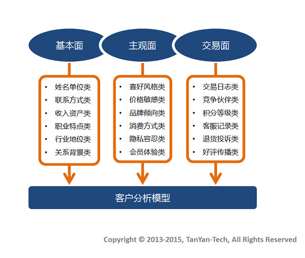 主觀面。一般說的客戶喜好方面。如果客戶是具體的會員顧客,那么他的喜好風(fēng)格、價格敏感、品牌傾向、消費方式等等數(shù)據(jù)都要收集。如果客戶是公司,那么這家公司能與您發(fā)生業(yè)務(wù)往來的主要人員的數(shù)據(jù)都要收集。需要注意的是,這類人的隱私容忍度和干擾容忍度也要客觀的采集到。再有就是這些顧客或人員對會員等級和積分體系的虛擬體驗傾向,也是最有用的數(shù)據(jù)。